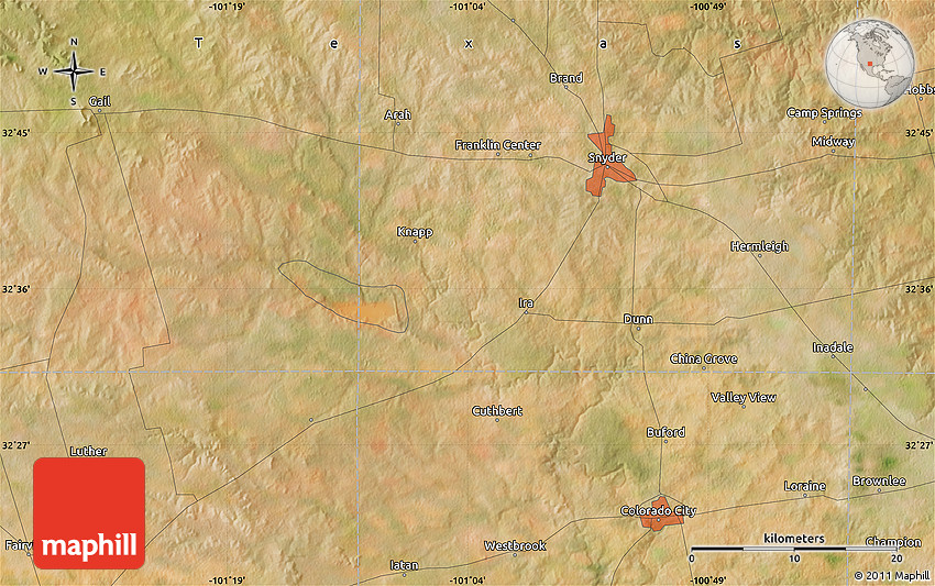 The flat satellite map represents one of many map types available. Look at Gail, Borden County, Texas, United States from different perspectives.