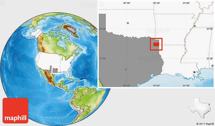Maphill is a collection of map images. This image combines a physical map with the globe centered on Cass County. Use the buttons under the image to switch to different map types.