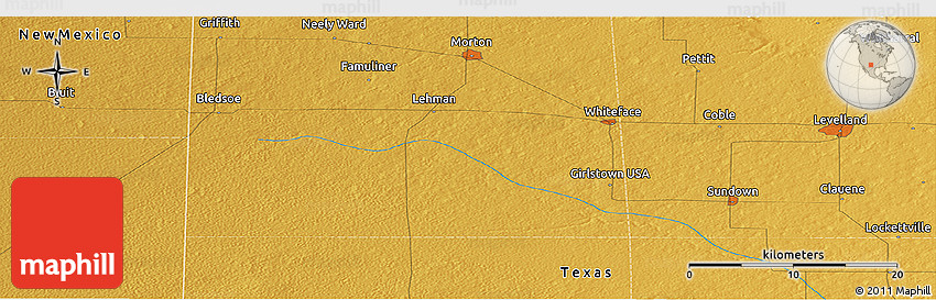 The panoramic physical map represents one of many map types and styles available. Look at Famuliner, Cochran County, Texas, United States from different perspectives.