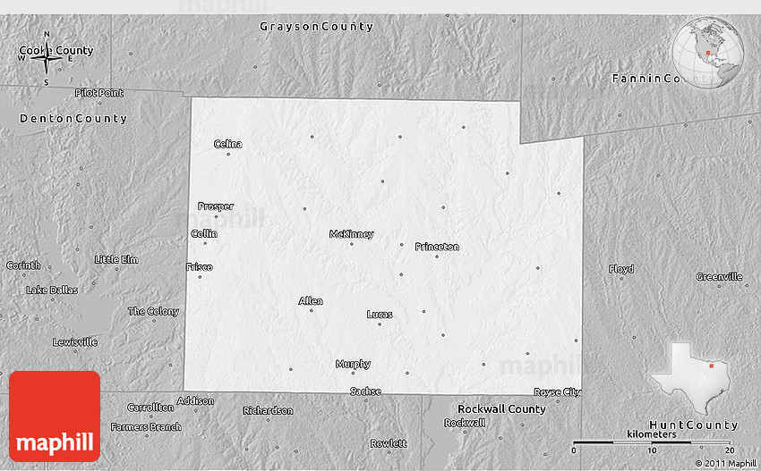 The grey colored map. Collin County is highlighted in white. This color scheme is similar to silver styled maps, but compared to the latter, a darker shade of gray is used.