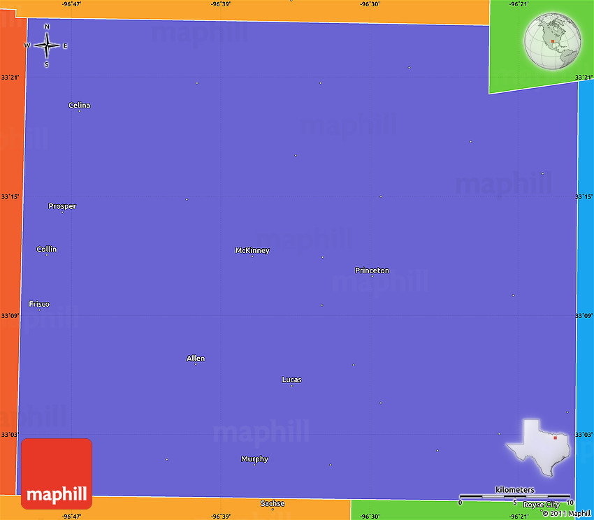 Each map type offers different information and each map style is designed for a different purpose. Read about the styles and map projection used in the above map (Political Simple Map of Collin County).