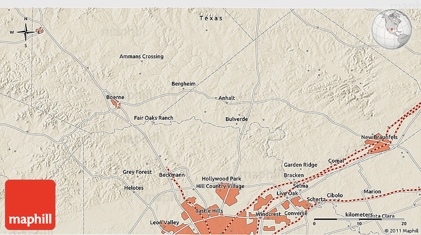 The value of Maphill lies in the possibility to look at the same area from several perspectives. Maphill presents the map of Comal in a wide variety of map types and styles.
