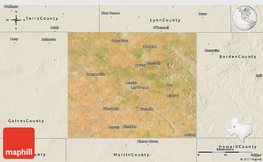 The 3D satellite map represents one of several map types and styles available. Look at Dawson County, Texas, United States from different perspectives.