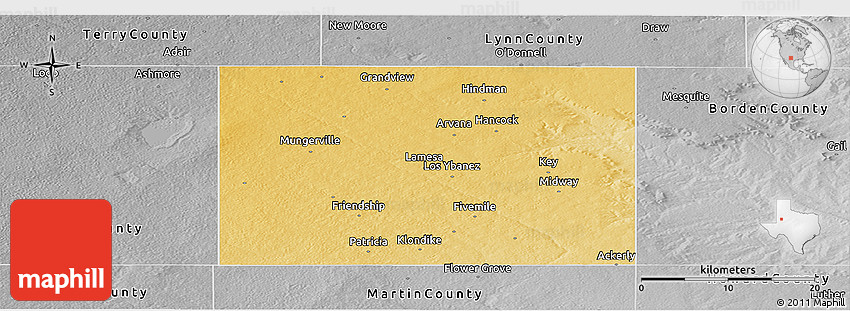 The panoramic physical map represents one of several map types and styles available. Look at Dawson County, Texas, United States from different perspectives.