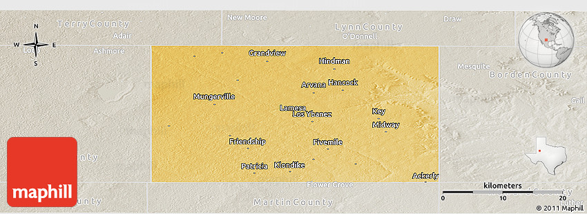The panoramic physical map represents one of several map types and styles available. Look at Dawson County, Texas, United States from different perspectives.