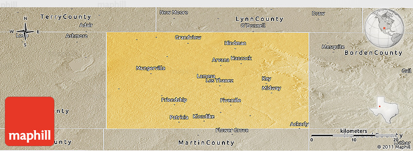 The panoramic physical map represents one of several map types and styles available. Look at Dawson County, Texas, United States from different perspectives.