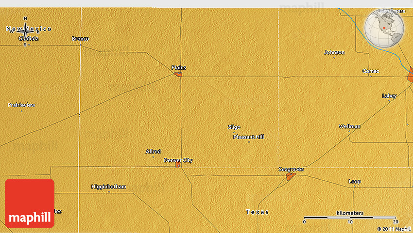 The 3D physical map represents one of many map types and styles available. Look at Seagraves, Gaines County, Texas, United States from different perspectives.