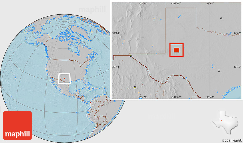 The gray location map represents one of several map types and styles available. Look at Martin County, Texas, United States from different perspectives.