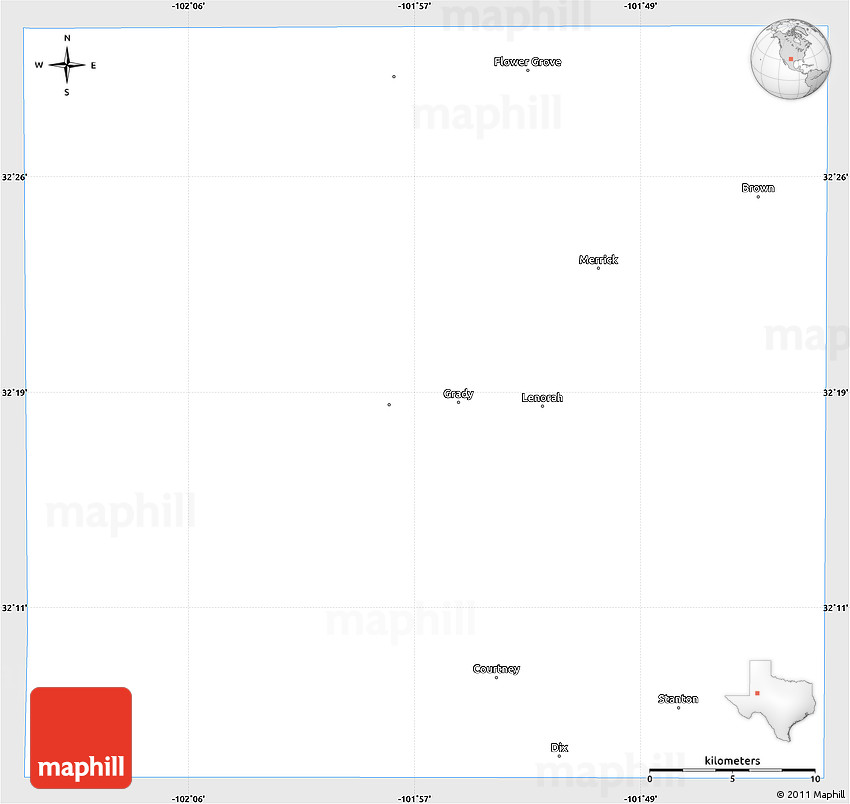 The simple silver style outline map represents one of several map types and styles available. Look at Martin County, Texas, United States from different perspectives.