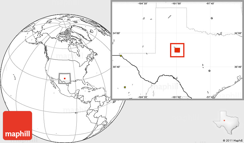 The blank location map represents one of several map types and styles available. Look at Mitchell County, Texas, United States from different perspectives.