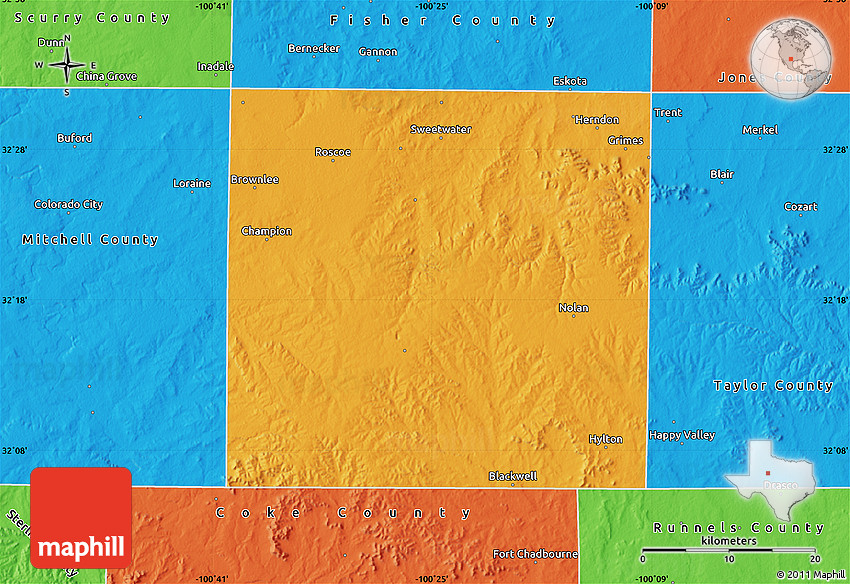 Maphill is a collection of map images. This political map of Nolan County is one of them. Click on the Detailed button under the image to switch to a more detailed map.