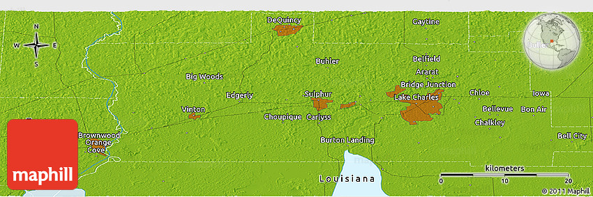 The panoramic physical map represents one of many map types and styles available. Look at Francis, Orange County, Texas, United States from different perspectives.