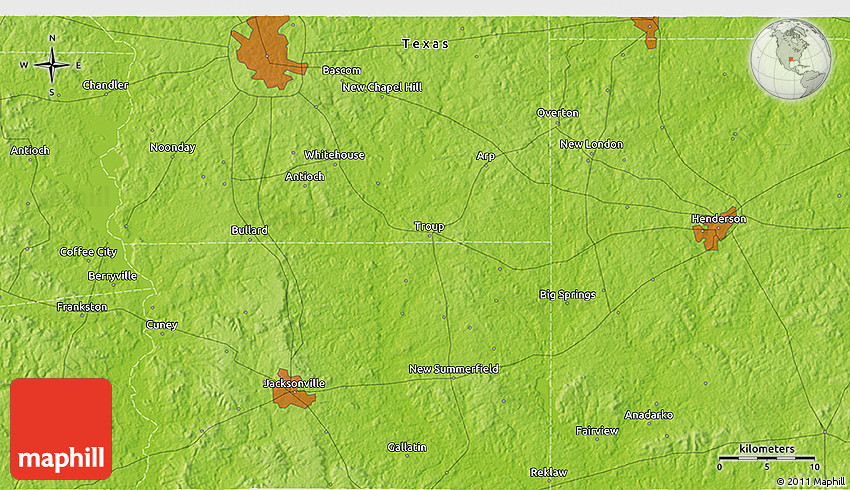 The 3D physical map represents one of many map types and styles available. Look at Joinerville, Rusk County, Texas, United States from different perspectives.