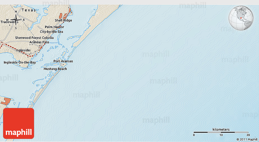 The 3D shaded relief map represents one of many map types and styles available. Look at Harbor City, San Patricio County, Texas, United States from different perspectives.