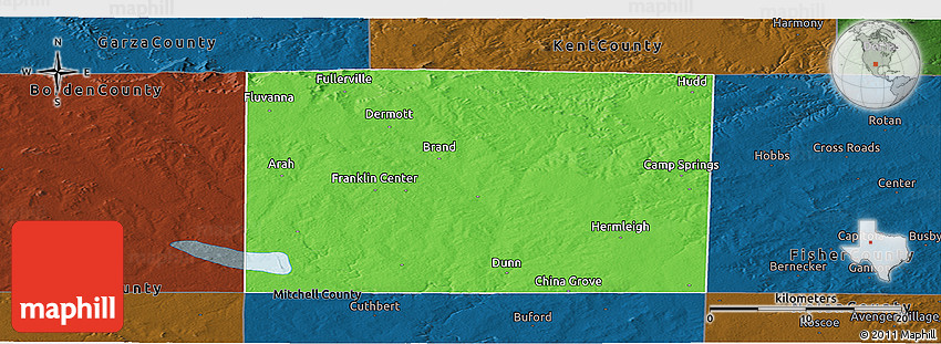 Each map type offers different information and each map style is designed for a different purpose. Read about the styles and map projection used in the above map (Political Panoramic Map of Scurry County, darken).