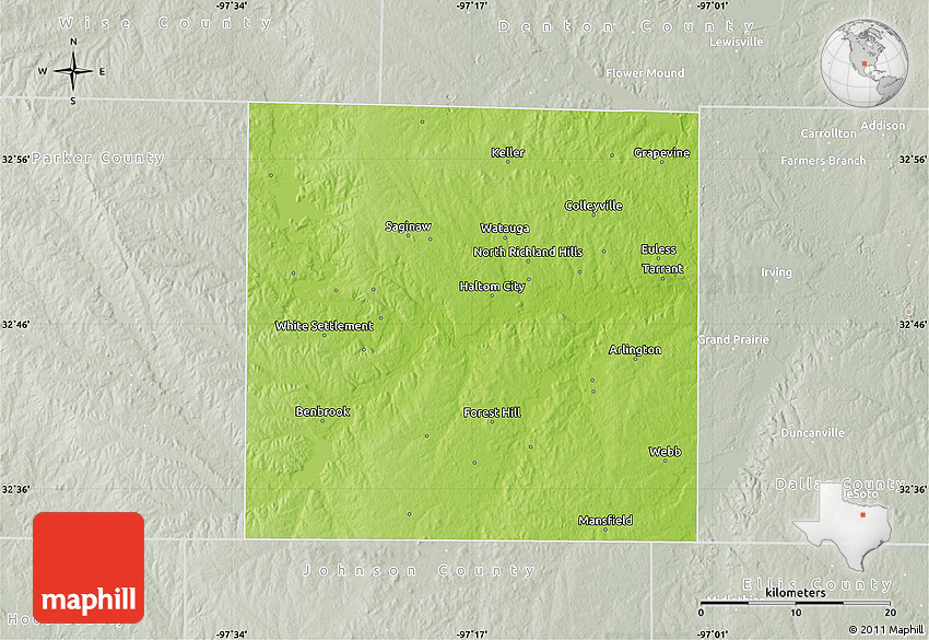 Maphill is a collection of map images. This physical map of Tarrant County is one of them. Click on the Detailed button under the image to switch to a more detailed map.