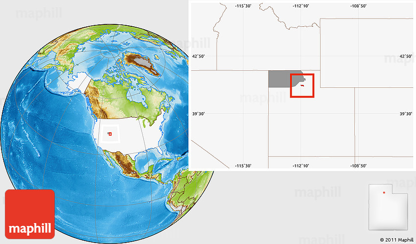 Maphill is a collection of map images. This image combines a physical map with the globe centered on ZIP code 84015. Use the buttons under the image to switch to different map types.