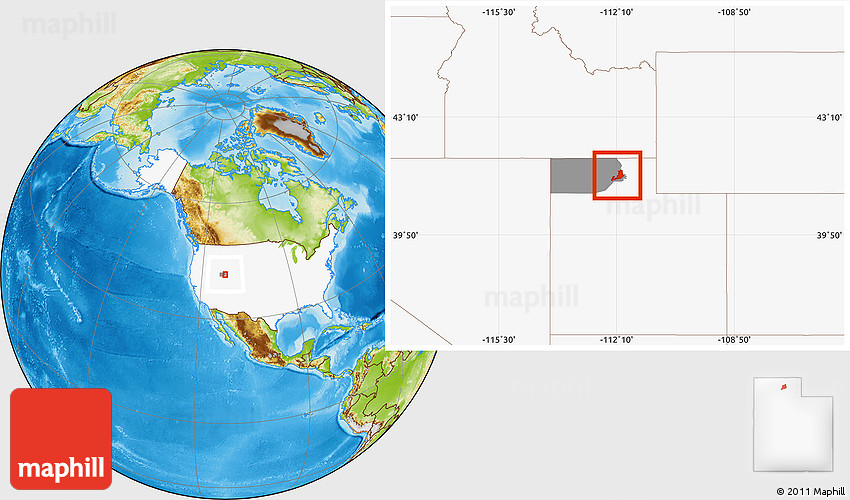 Maphill is a collection of map images. This image combines a physical map with the globe centered on ZIP code 84302. Use the buttons under the image to switch to different map types.