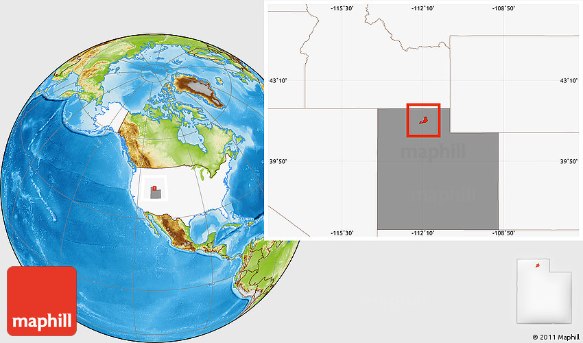 Maphill is a collection of map images. This image combines a physical map with the globe centered on ZIP code 84302. Use the buttons under the image to switch to different map types.