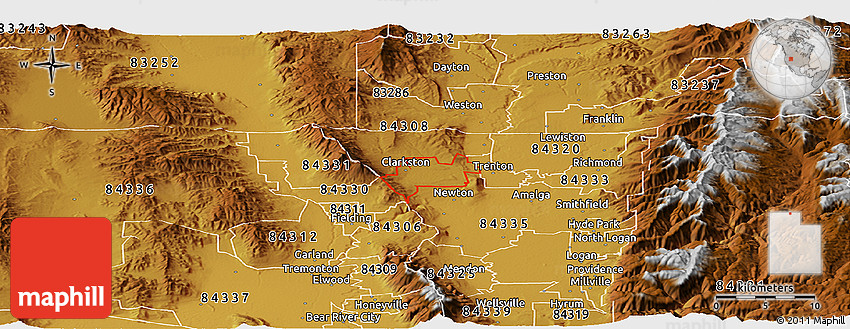 The value of Maphill lies in the possibility to look at the same area from several perspectives. Maphill presents the map of ZIP code 84305 in a wide variety of map types and styles.
