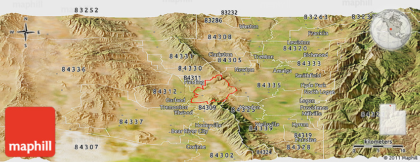 Embed the above satellite panoramic map of ZIP code 84306 into your website. Enrich your blog with quality map graphics. Make the web a more beautiful place.
