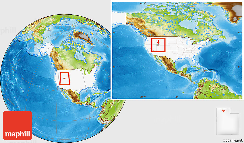 Maphill is a collection of map images. This image combines a physical map with the globe centered on ZIP code 84307. Use the buttons under the image to switch to different map types.