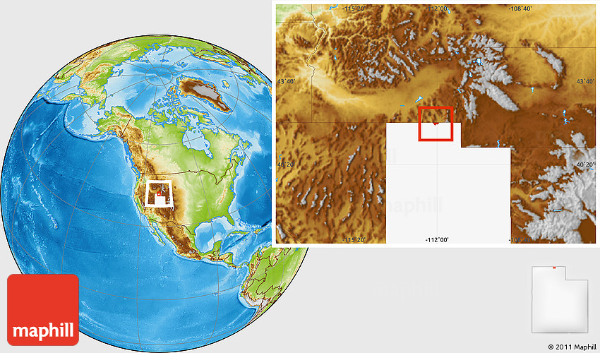 Maphill is a collection of map images. This image combines a physical map with the globe centered on ZIP code 84308. Use the buttons under the image to switch to different map types.
