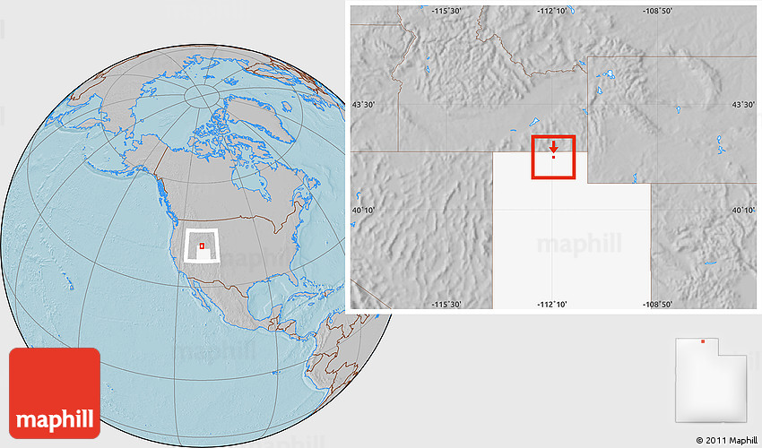 Maphill is a collection of map images. This image combines a gray map with the globe centered on ZIP code 84311. Use the buttons under the image to switch to different map types.