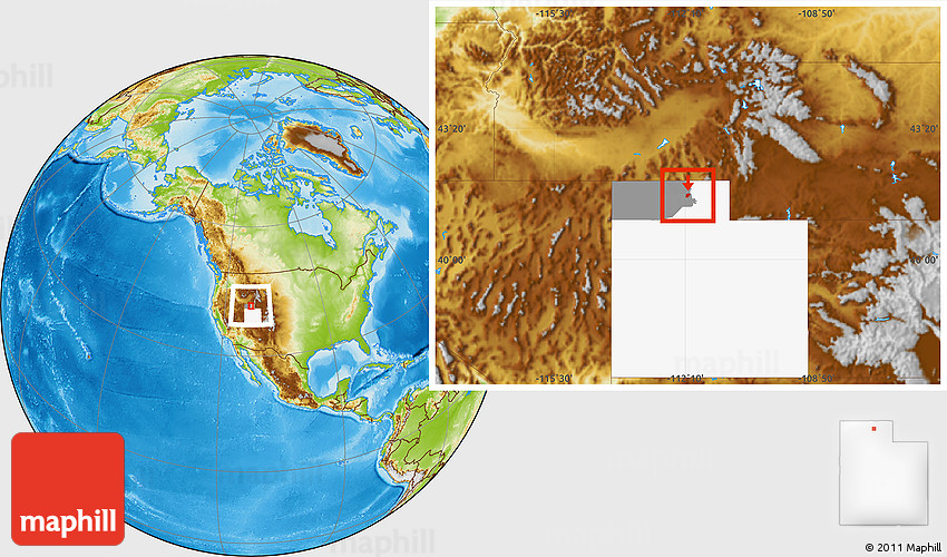 Maphill is a collection of map images. This image combines a physical map with the globe centered on ZIP code 84314. Use the buttons under the image to switch to different map types.