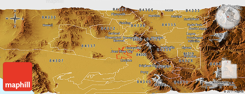 The value of Maphill lies in the possibility to look at the same area from several perspectives. Maphill presents the map of ZIP code 84314 in a wide variety of map types and styles.