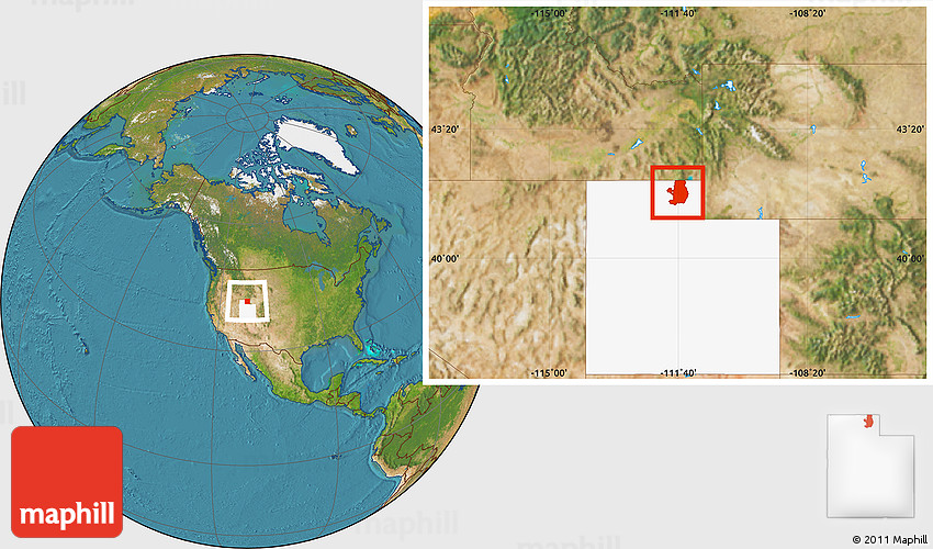 Maphill is a collection of map images. This image combines a satellite map with the globe centered on ZIP code 84321. Use the buttons under the image to switch to different map types.