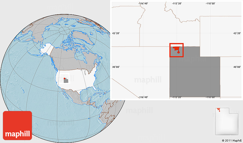 Maphill is a collection of map images. This image combines a gray map with the globe centered on ZIP code 84329. Use the buttons under the image to switch to different map types.