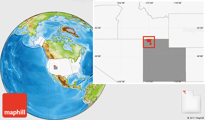 Maphill is a collection of map images. This image combines a physical map with the globe centered on ZIP code 84329. Use the buttons under the image to switch to different map types.