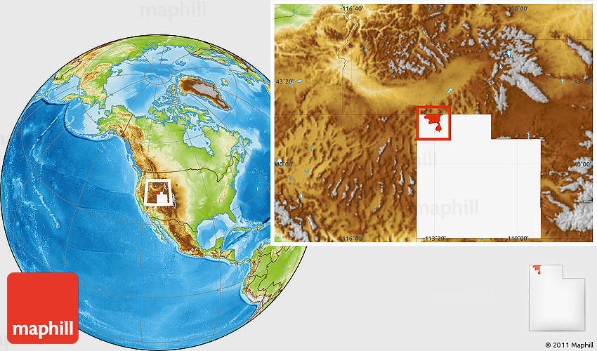 Maphill is a collection of map images. This image combines a physical map with the globe centered on ZIP code 84329. Use the buttons under the image to switch to different map types.