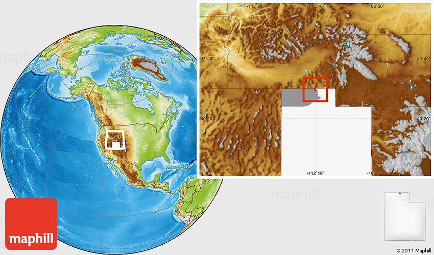 Maphill is a collection of map images. This image combines a physical map with the globe centered on ZIP code 84331. Use the buttons under the image to switch to different map types.