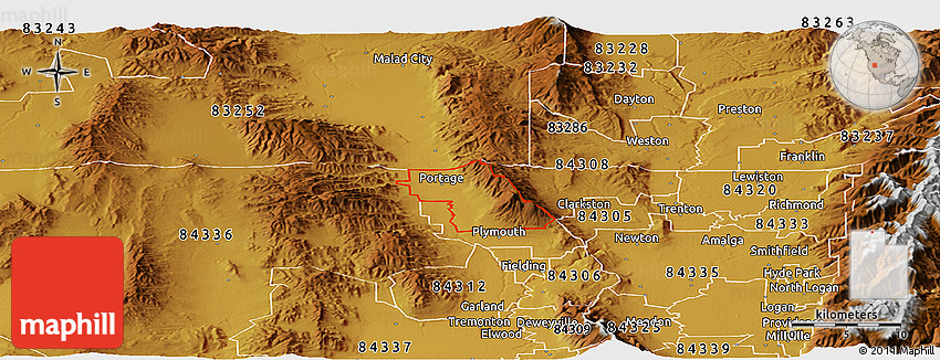 The panoramic physical ZIP code map represents one of several map styles available. Look at ZIP code 84331 from different perspectives.