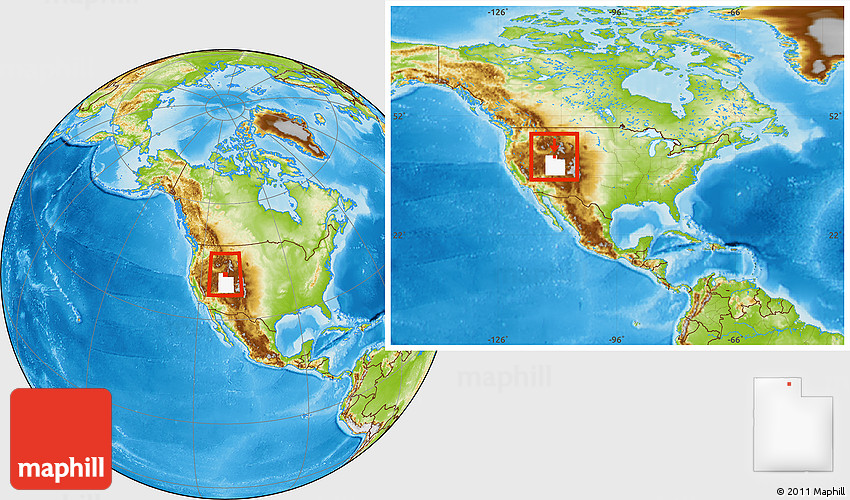 Maphill is a collection of map images. This image combines a physical map with the globe centered on ZIP code 84332. Use the buttons under the image to switch to different map types.