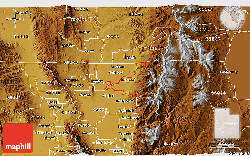 The value of Maphill lies in the possibility to look at the same area from several perspectives. Maphill presents the map of ZIP code 84333 in a wide variety of map types and styles.