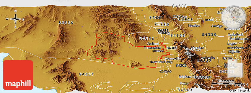 The panoramic physical ZIP code map represents one of several map styles available. Look at ZIP code 84337 from different perspectives.