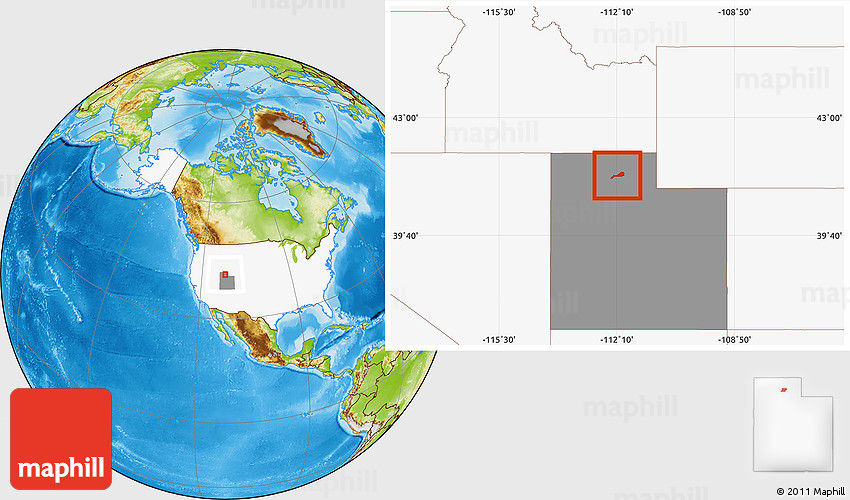 Maphill is a collection of map images. This image combines a physical map with the globe centered on ZIP code 84340. Use the buttons under the image to switch to different map types.