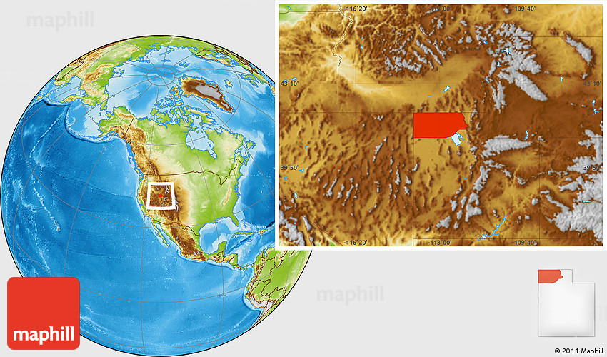 Maphill is a collection of map images. This image combines a physical map with the globe centered on Box Elder County. Use the buttons under the image to switch to different map types.