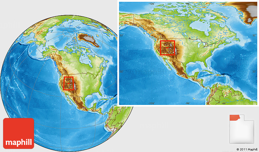 Maphill is a collection of map images. This image combines a physical map with the globe centered on Box Elder County. Use the buttons under the image to switch to different map types.