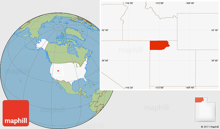 Maphill is a collection of map images. This image combines a savanna style map with the globe centered on Box Elder County. Use the buttons under the image to switch to different map types.
