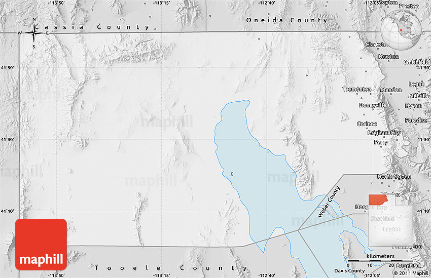 The flat silver style map represents one of several map types and styles available. Look at Box Elder County, Utah, United States from different perspectives.
