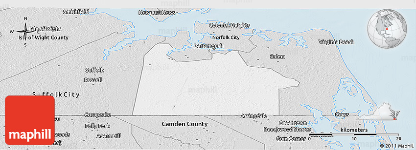 The panoramic silver style map represents one of several map types and styles available. Look at Chesapeake City, Virginia, United States from different perspectives.