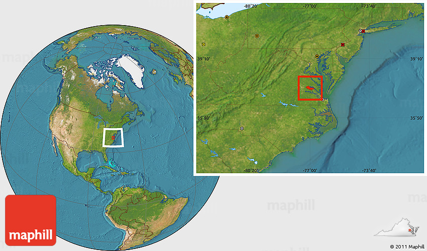 Maphill is a collection of map images. This image combines a satellite map with the globe centered on New Kent County. Use the buttons under the image to switch to different map types.