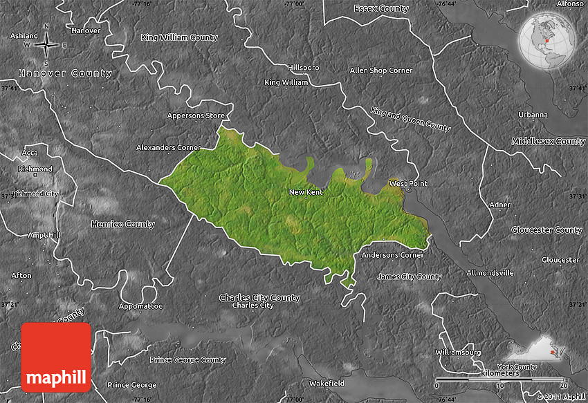 Satellite map shows the Earth's surface as it really looks like. The above map is based on satellite images taken on July 2004. This satellite map of New Kent County is meant for illustration purposes only. For more detailed maps based on newer satellite and aerial images switch to a detailed map view.