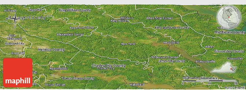 Embed the above satellite panoramic map of New Kent County into your website. Enrich your blog with quality map graphics. Make the web a more beautiful place.