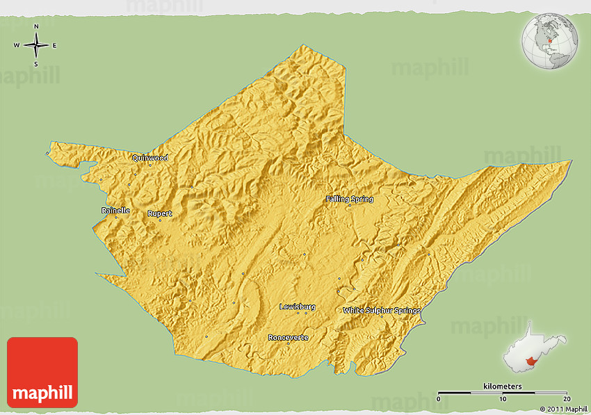 The value of Maphill lies in the possibility to look at the same area from several perspectives. Maphill presents the map of Greenbrier County in a wide variety of map types and styles.