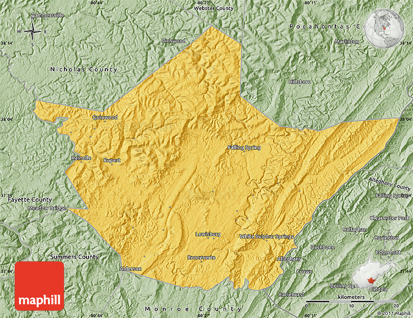 The value of Maphill lies in the possibility to look at the same area from several perspectives. Maphill presents the map of Greenbrier County in a wide variety of map types and styles.